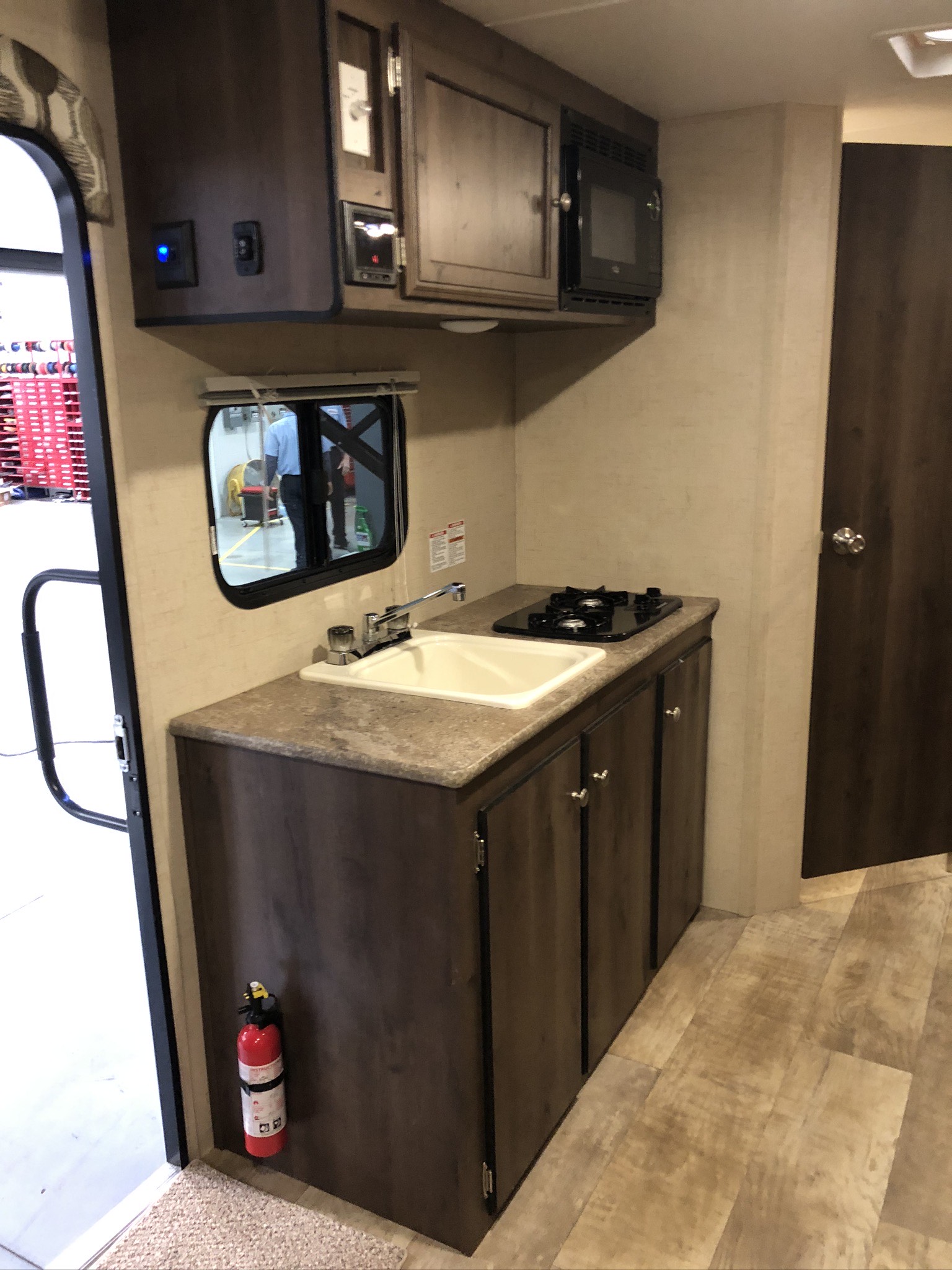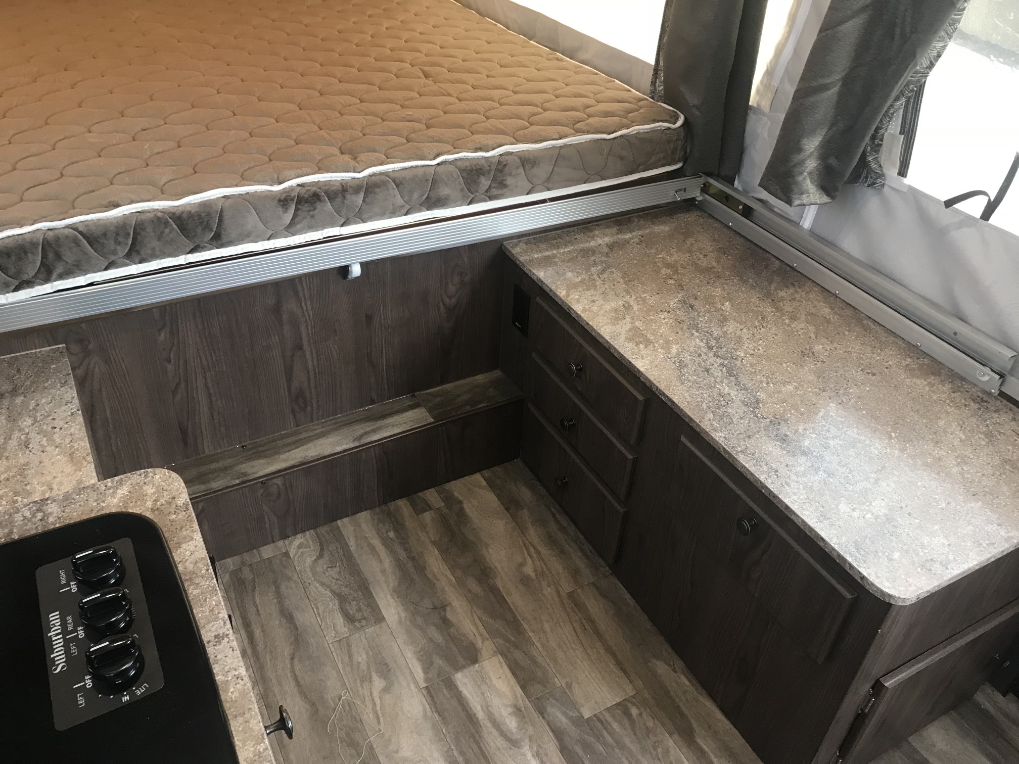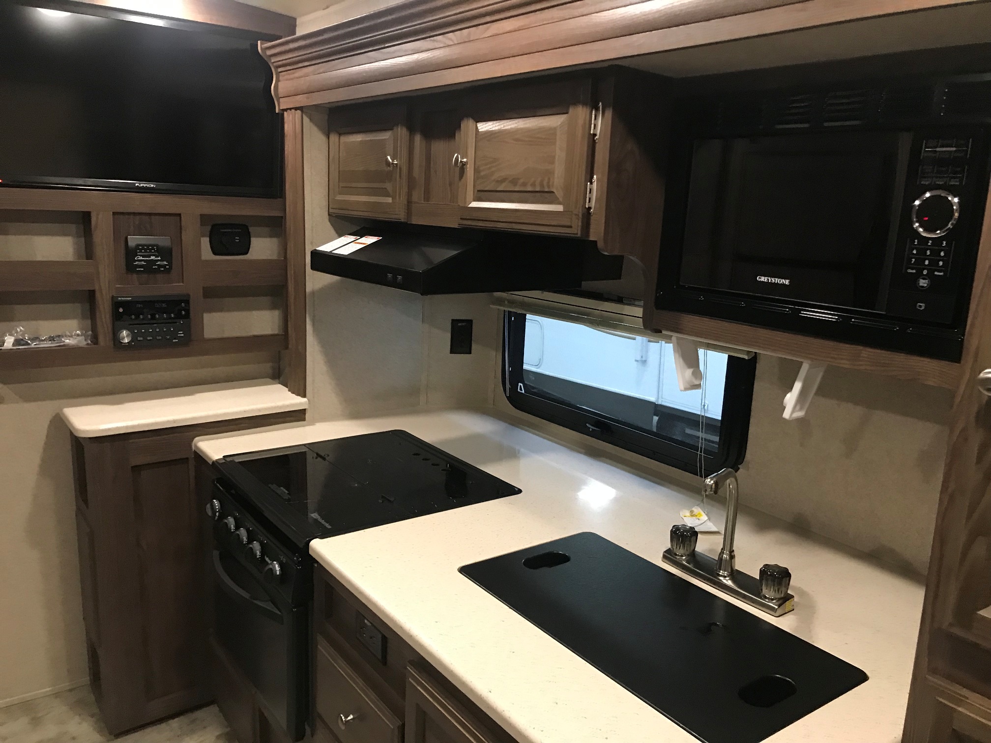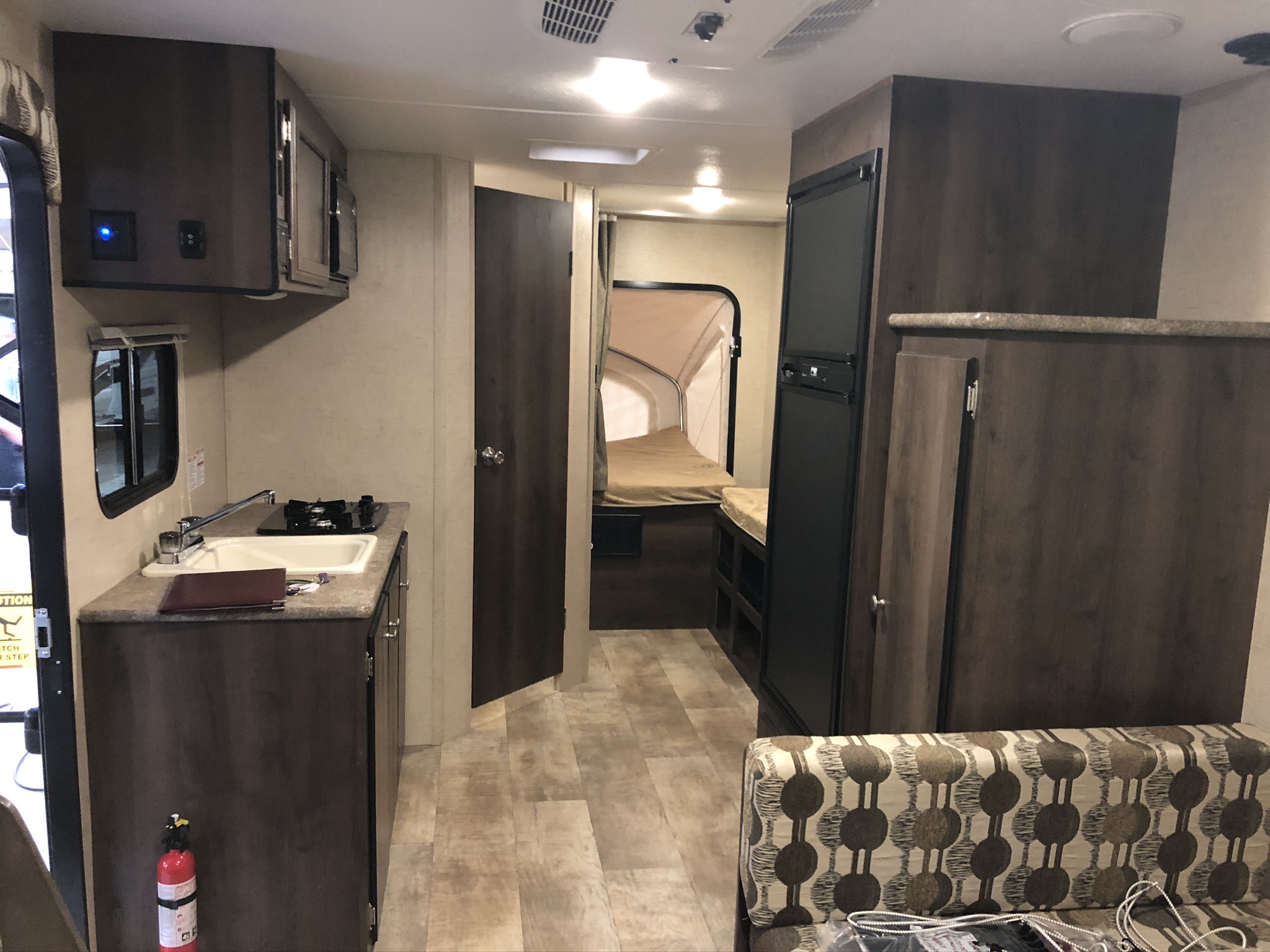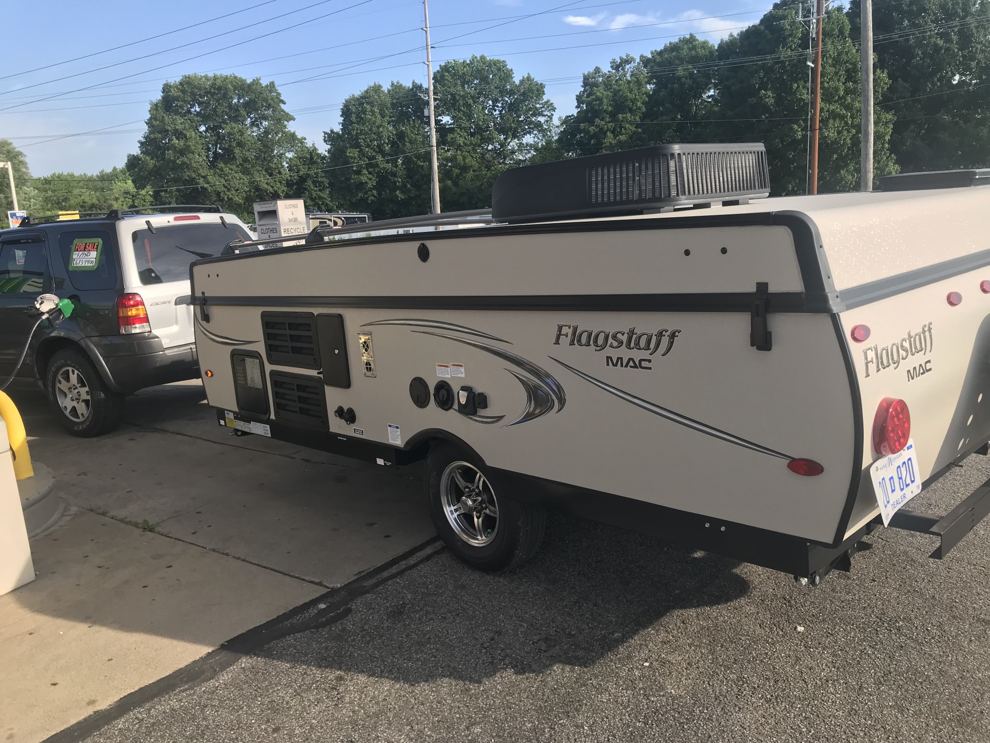 Just in a 18′ Sportsman Hybrid trailer with 3 pop out queen size beds . Also has a dinette and sofa that make beds as well, Full Bath , sink , stove ,microwave , double door refer. air , heat, hot water, TV , Bluetooth/ stereo with inside and outside speakers, large electric awning